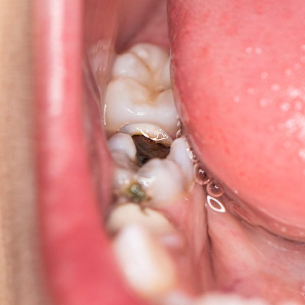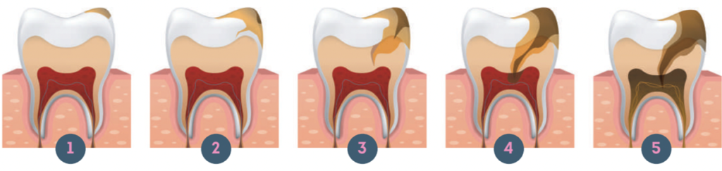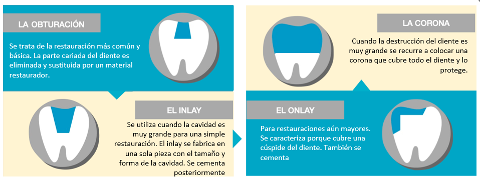 La caries es la formación de una cavidad en el diente debida a la desmineralización de los tejidos duros (esmalte y dentina) y provocada por la acción de las bacterias orales al descomponer los azúcares en ácido durante un cierto periodo de tiempo. Puede ir desde una lesión mínima en el esmalte, hasta afectar gravemente a la pulpa (el nervio) por lo que el tratamiento de la misma es muy variado dependiendo, entre otros factores, de la extensión de la misma.