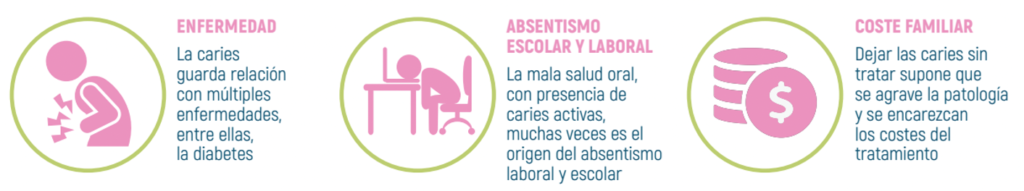 La caries es la formación de una cavidad en el diente debida a la desmineralización de los tejidos duros (esmalte y dentina) y provocada por la acción de las bacterias orales al descomponer los azúcares en ácido durante un cierto periodo de tiempo. Puede ir desde una lesión mínima en el esmalte, hasta afectar gravemente a la pulpa (el nervio). Con las medidas adecuadas, es posible prevenirla.