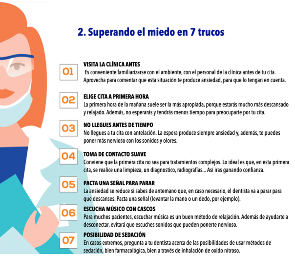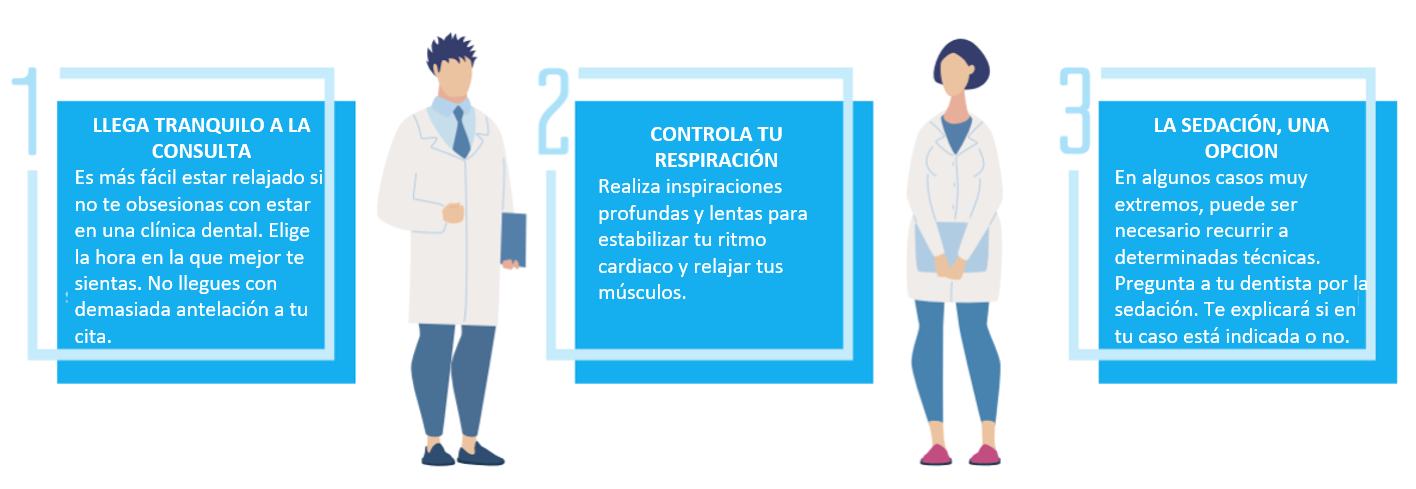 La ansiedad frente al dentista es frecuente. En la última encuesta nacional, el 15% de los españoles manifestó sentir miedo o ansiedad ante la idea de ir al dentista. Muchas veces esta alteración está provocada por experiencias previas que no han sido satisfactorias, pero no siempre es así: muchos pacientes desconocen el origen de su miedo al dentista. Estos consejos sencillos te pueden ayudar a superarlo. Si es tu caso, no dejes de advertirlo a tu dentista.
